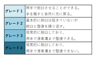 脱臼の程度によって1~4までのグレードに分けられます。
